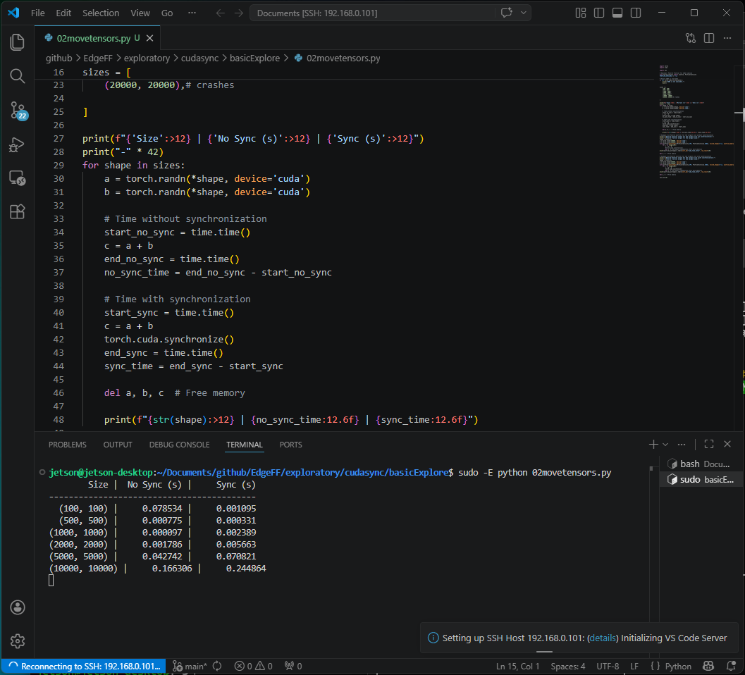 jetson@jetson-desktop:~/Documents/github/EdgeFF/exploratory/cudasync/basicExplore$ sudo -E python 02movetensors.py