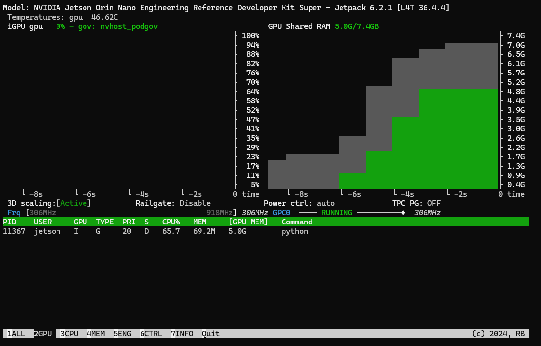 - Jetson Orin Nano with Ubuntu 22.04 (aarch64) and Jetpack 6.2.1